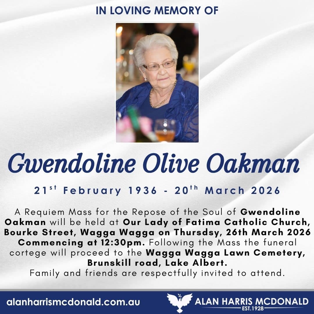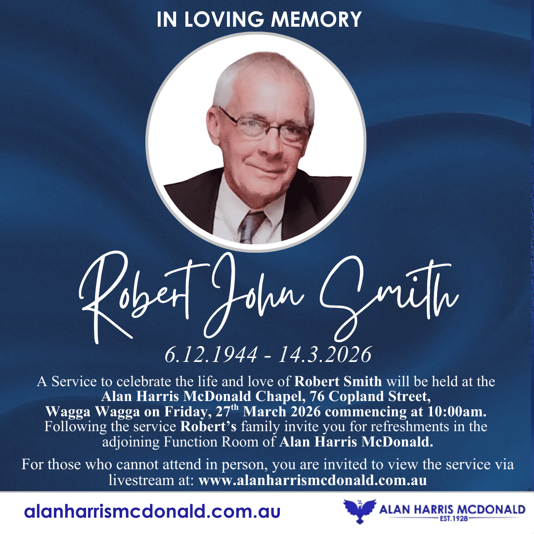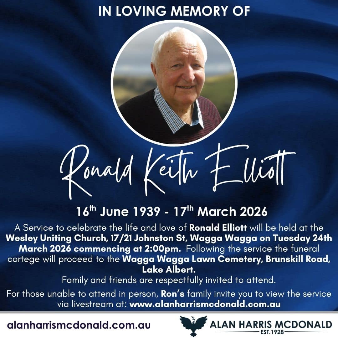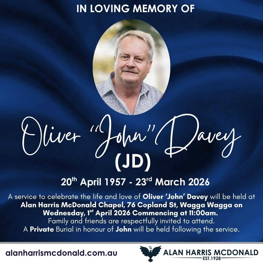 A service to celebrate the life and love of Oliver ‘John’ Davey will be held at Alan Harris McDonald Chapel, 76 Copland St, Wagga Wagga on Wednesday, 1st April 2026 Commencing at 11:00am. Family and friends are respectfully invited to [...]