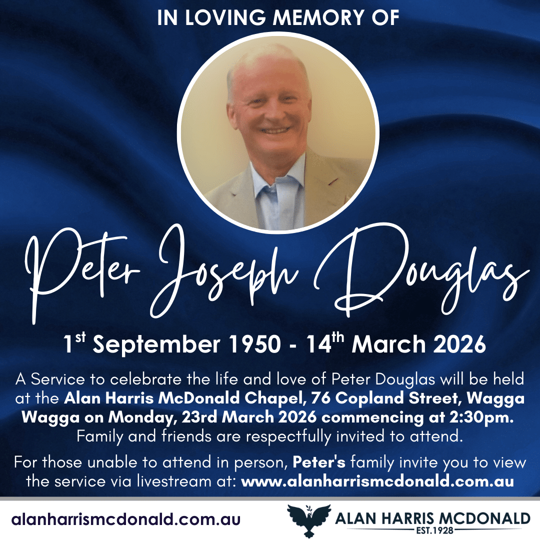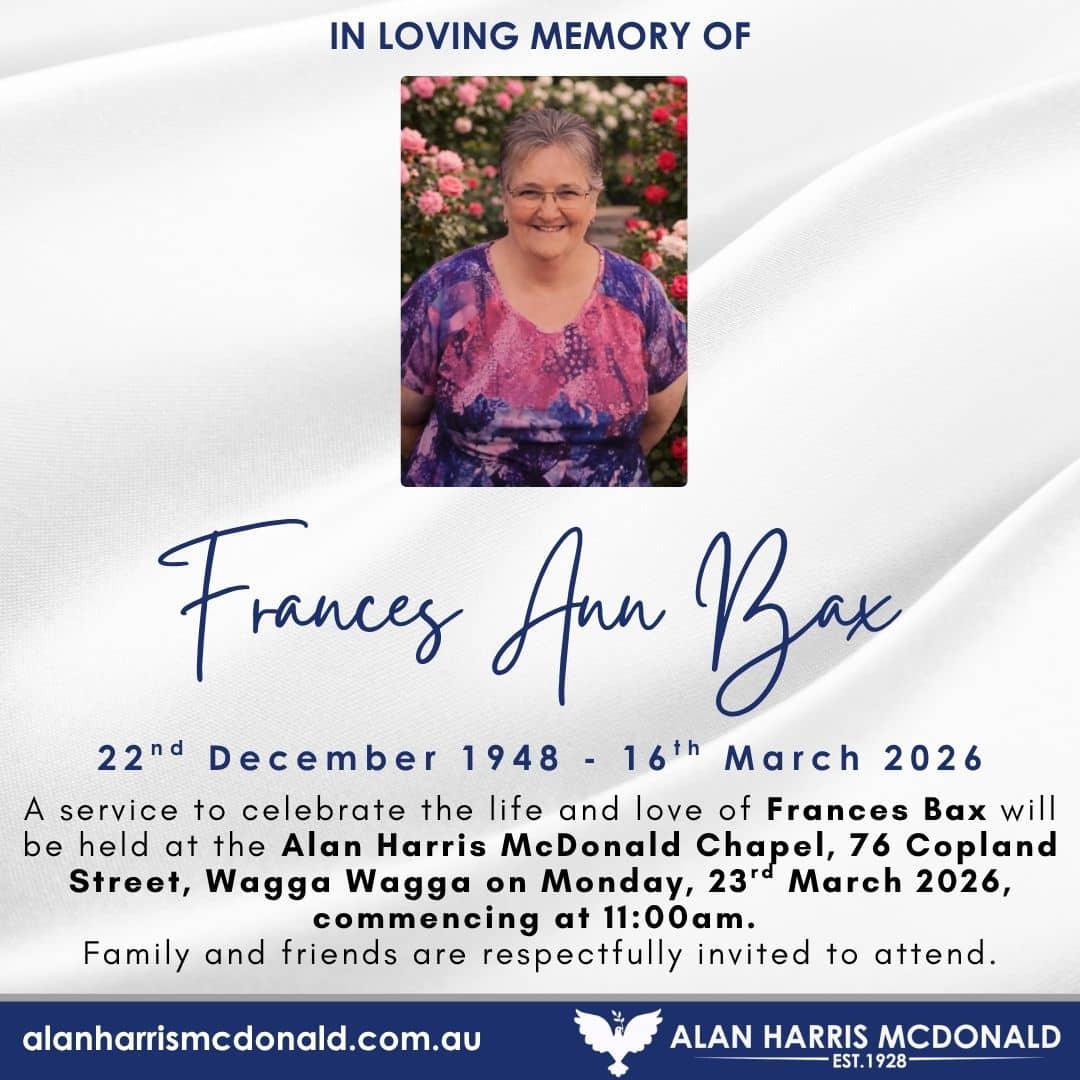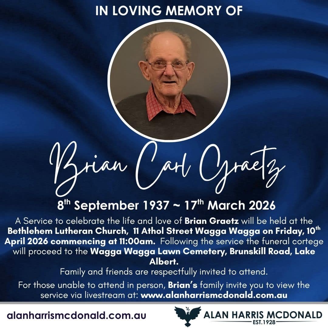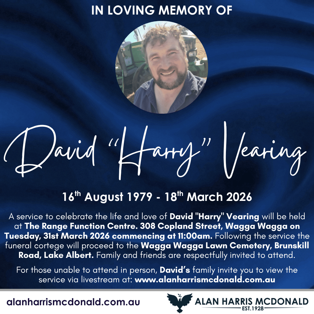 A service to celebrate the life and love of Oliver ‘John’ Davey will be held at Alan Harris McDonald Chapel, 76 Copland St, Wagga Wagga on Wednesday, 1st April 2026 Commencing at 11:00am. Family and friends are respectfully invited to [...]