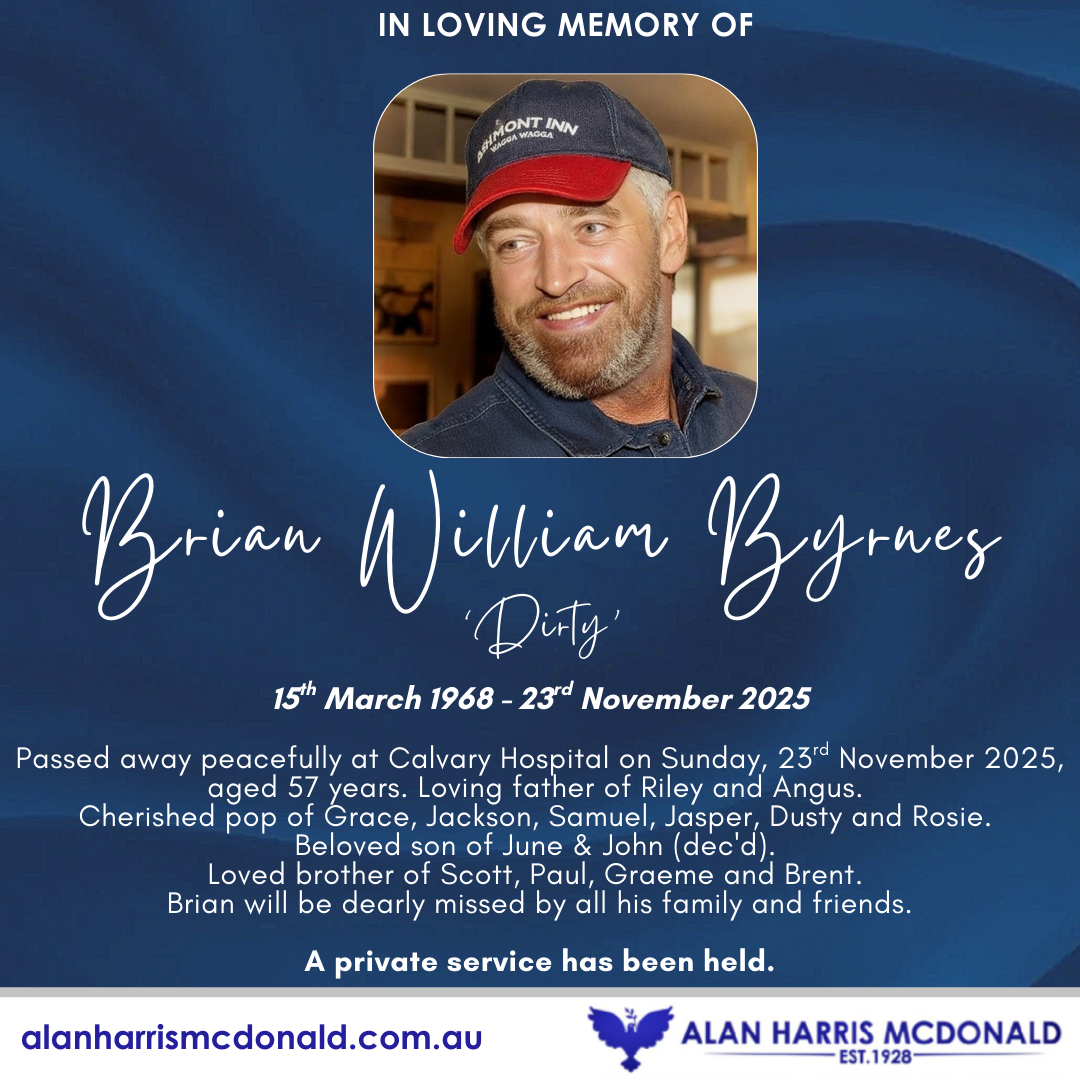 Passed away peacefully at Calvary Hospital on Sunday, 23rd November 2025, aged 57 years. Loving father of Riley and Angus. Cherished pop of Grace, Jackson, Samuel, Jasper, Dusty and Rosie. Beloved son of June & John (dec'd). Loved brother of [...]