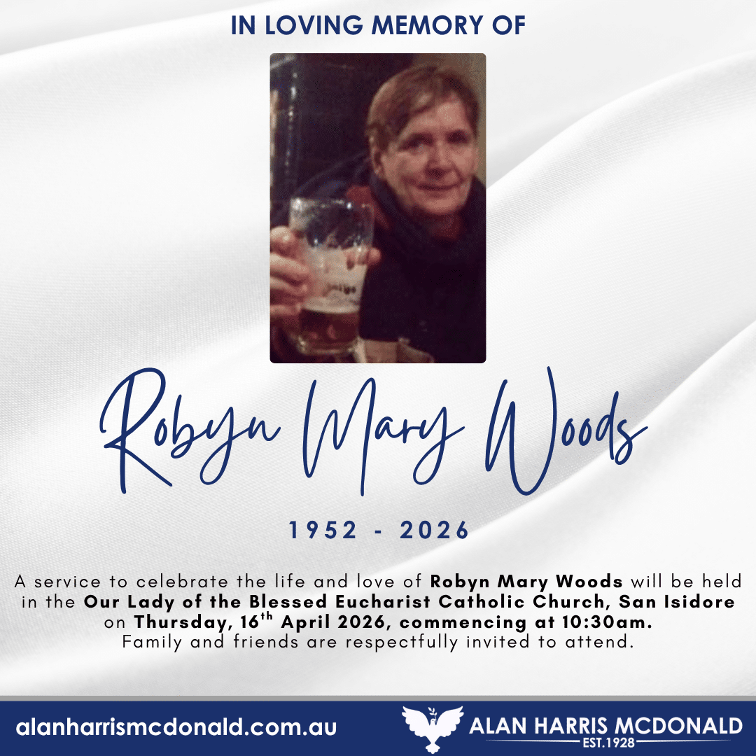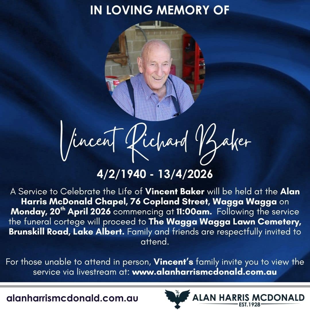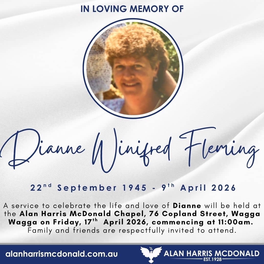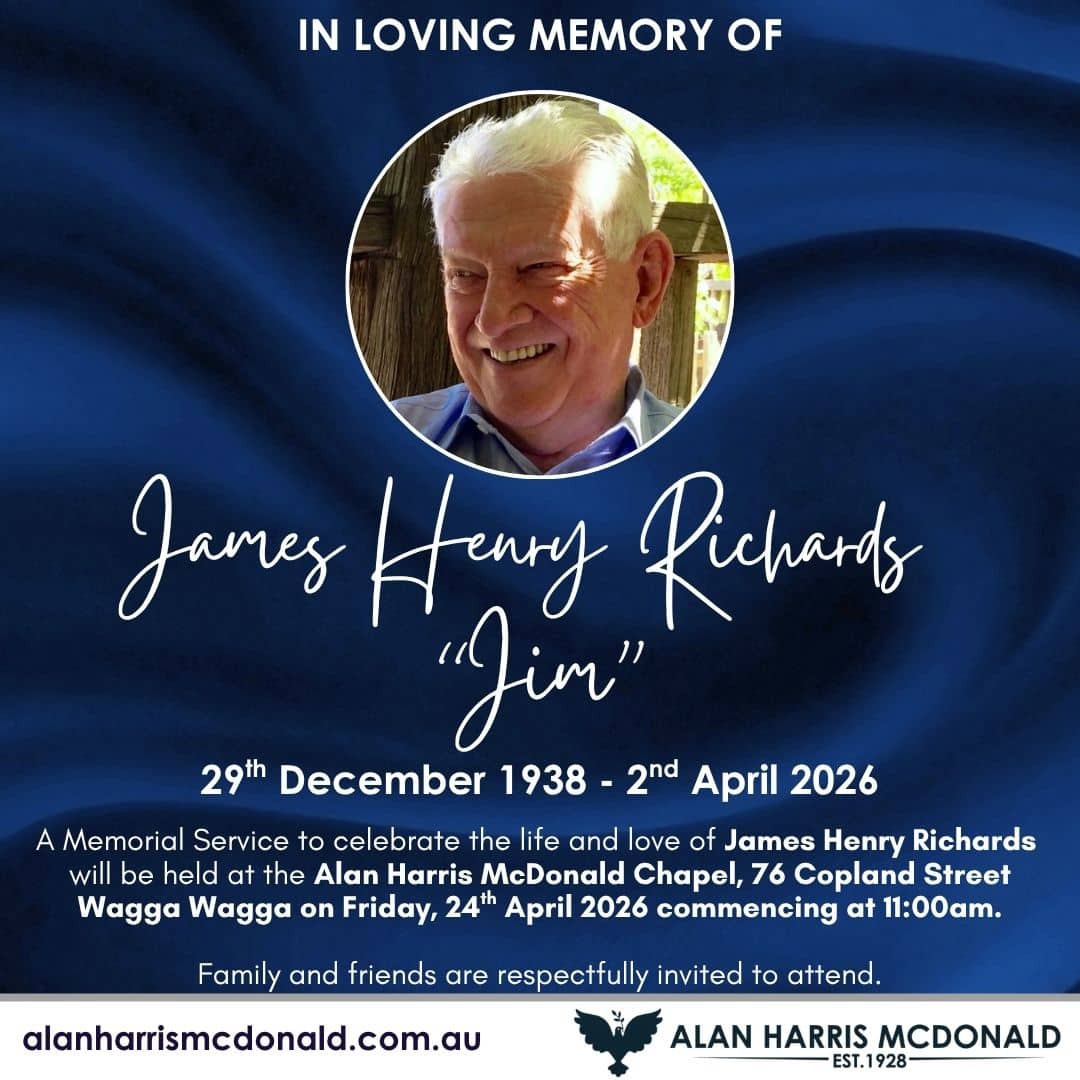 29th December 1938 - 2nd April 2026 A Memorial Service to celebrate the life and love of James Henry Richards will be held at the Alan Harris McDonald Chapel, 76 Copland Street Wagga Wagga on Friday, 24th April 2026 commencing [...]