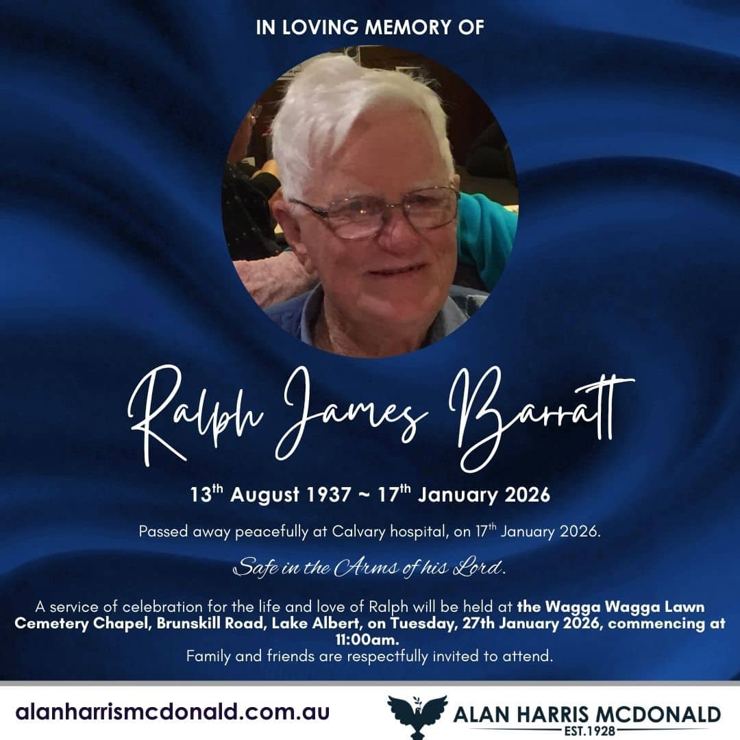 A Service to Celebrate the Life and Love of Francine will be held at the Alan Harris McDonald Chapel, 76 Copland Street, Wagga Wagga on Tuesday, 3rd February 2026 commencing at 1:00pm. Prior to commencement of the service the family [...]